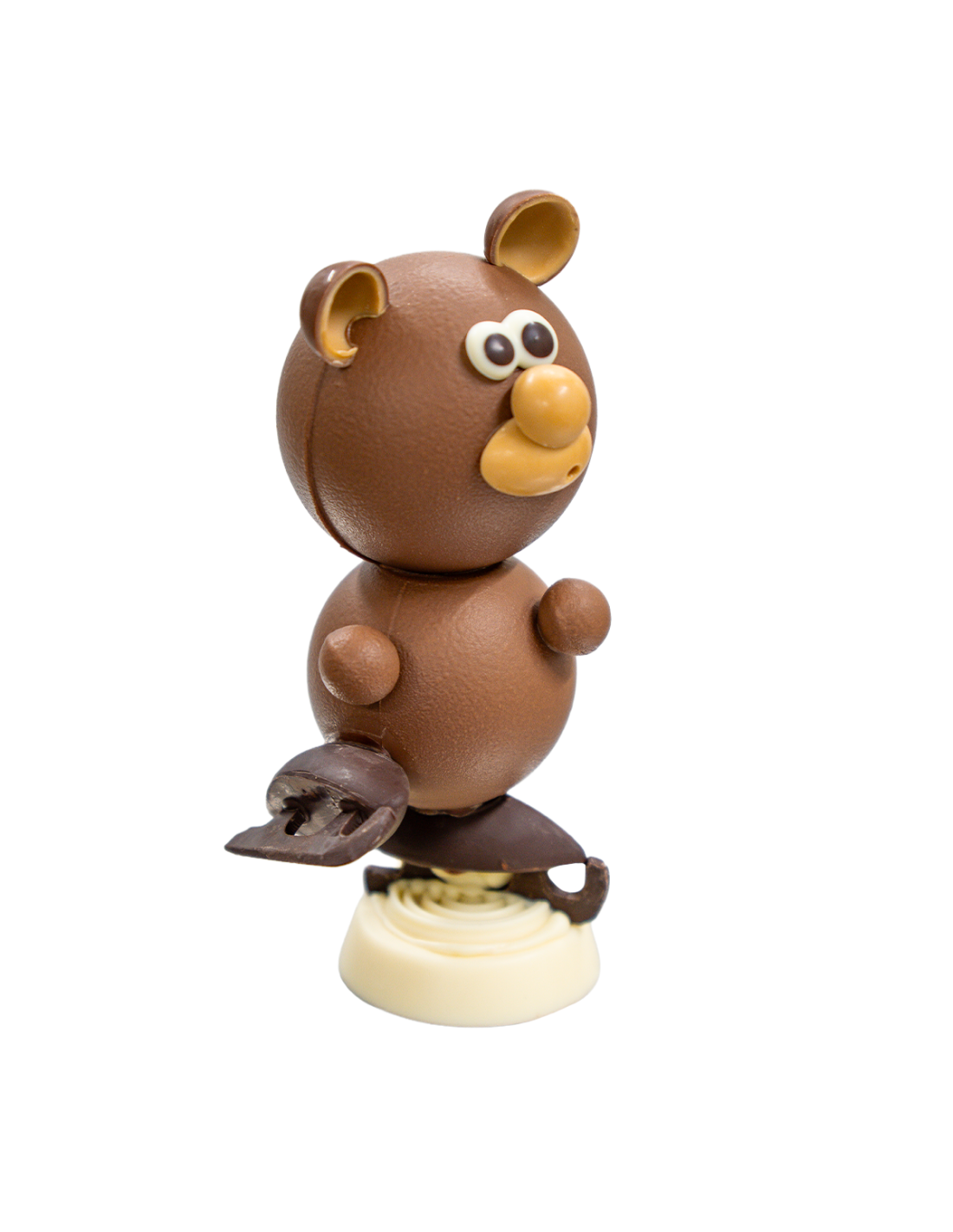 Découvrez notre ourson 100% chocolat sur ses patins, issu de notre collection Dinard sur glace, créée en écho à l’arrivée de la patinoire au cœur de la ville.